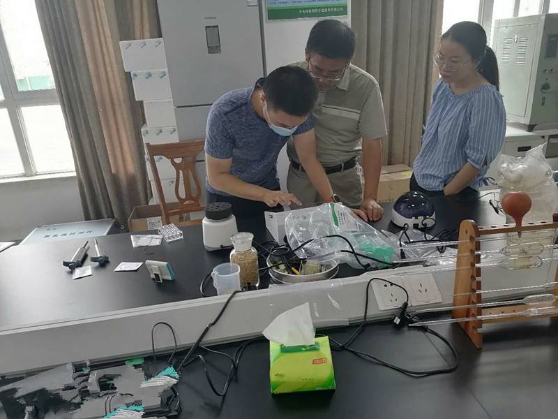 2020年8月27日腾森仪器应中央储备粮食宿迁直属库的诚邀,携带TS-1000S重金属检测仪器及相关配件去中央储备粮食宿迁直属库,进行仪器的培训,帮助宿迁直属库解决目前粮食重金属检测难题。